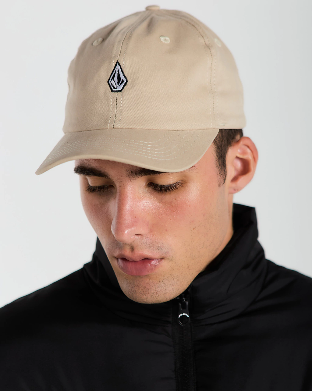 Boné Volcom Mini Mark. Possui a aba curva desestruturada estilo ""Dad Hat"", ajuste traseiro em fivela de metal e bordado Volcom Stone frontal.