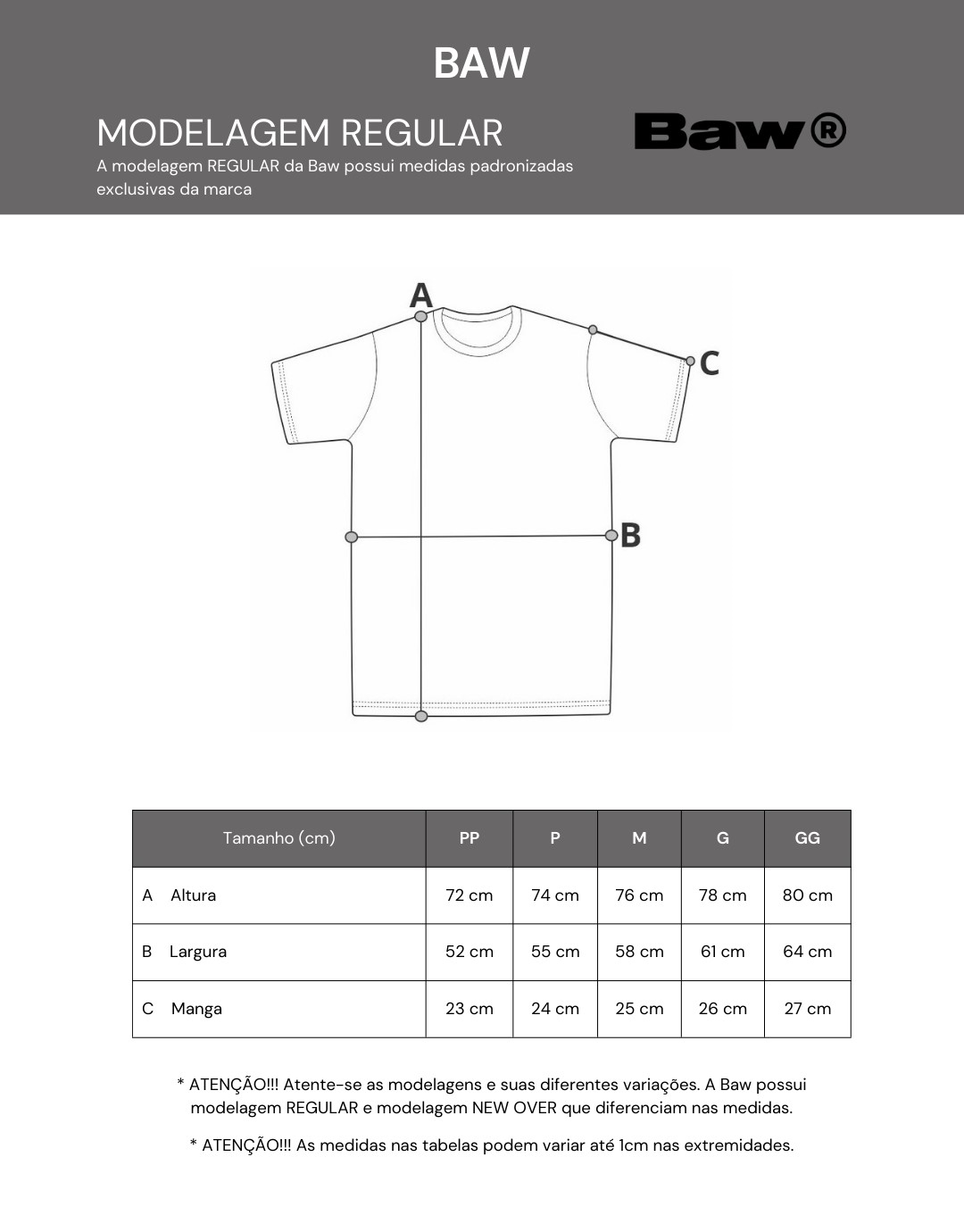 *MEDIDAS APROXIMADAS. Variação - Comprimento: 2cm/ Torax: 3cm/ Barra: 3cm/ Manga: 1cm/ Cava: 1cm.