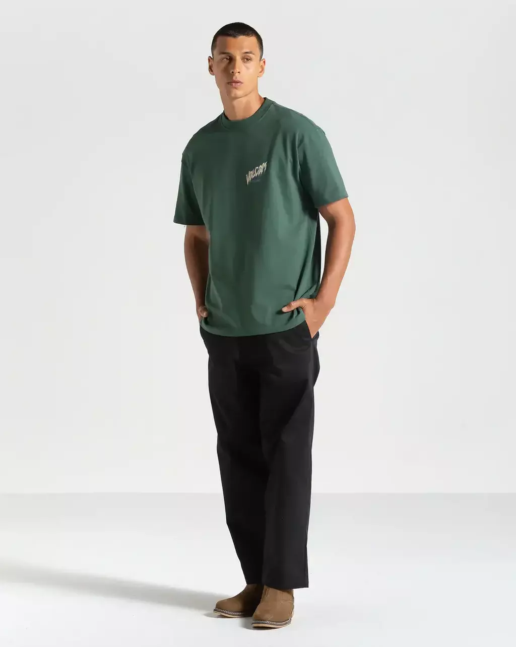 Camiseta Volcom Comfort Meow. Possui modelagem comfort, gola de 3cm, estampa em silk frontal e nas costas, assinatura Volcom na manga e etiqueta Volcom na barra.