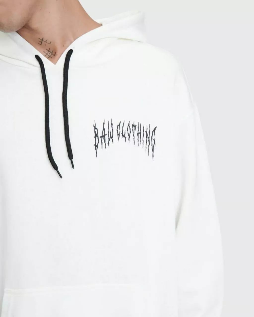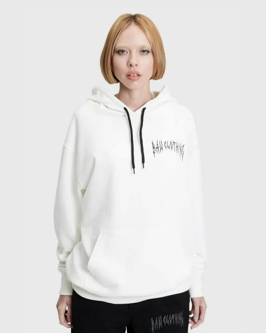 Blusa modelagem oversized. Manga longa com capuz e cordão embutido para ajuste. Bolso canguru, barra e punhos com elástico. Possui o logo estampado.