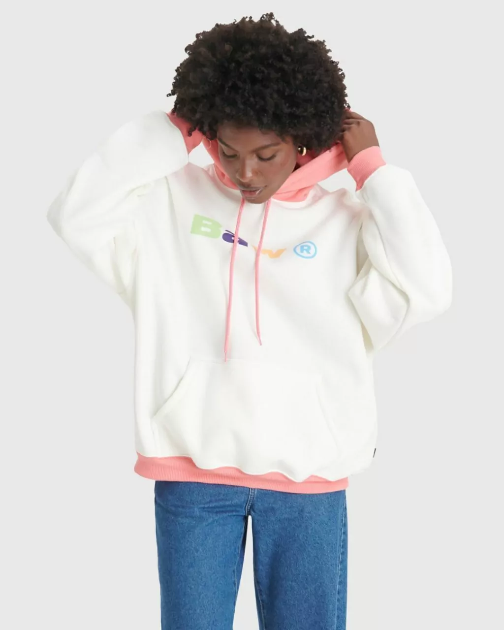 Blusa OVERSIZED manga longa confeccionada em moletom. Possui capuz com cordão embutido para ajuste, bolso canguru, punhos e barra em ribana, com estampa frontal.