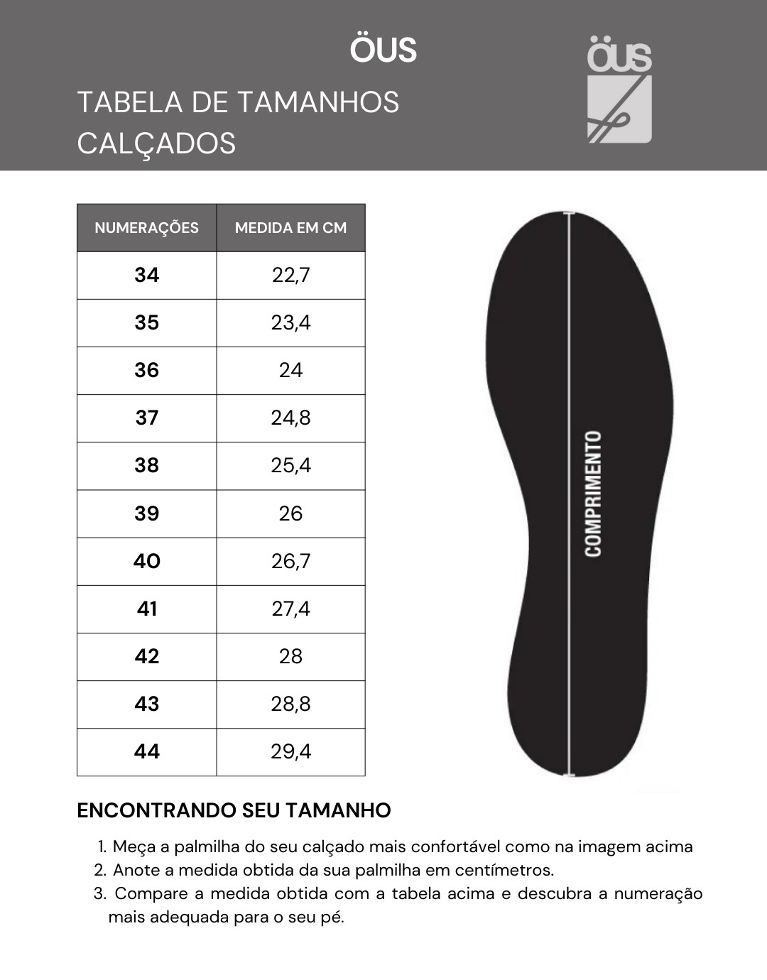 Atente-se as medidas na tabela abaixo e confira com um calçado seu de sua preferência.